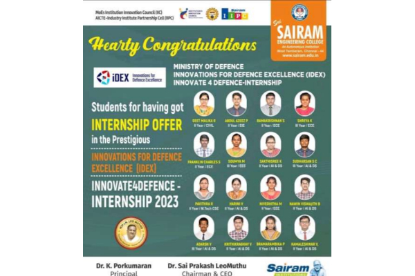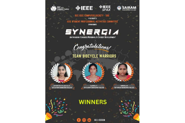 | 2 | Infoculture Fiesta Hackathon | Thrisala K | II | 2023–2024 | 08.4.2024 | SRI SAIRAM ENGINEERING COLLEGE, | 2nd prize |