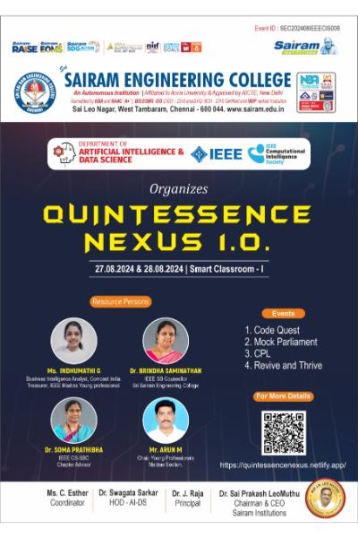 IEEE CIS society Quintessence Nexus 1.0 on 27 & 28-08-2024